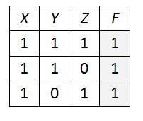 1) Символом F обозначено одно из указанных ниже логических выражений от трех аргументов: X, Y, Z. Дан фрагмент таблицы истинности выражения F (см. таблицу справа). Какое выражение соответствует F?