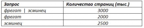 В таблице приведены запросы и количество страниц, которые нашел поисковый сервер по этим запросам в некотором сегменте Интернета: